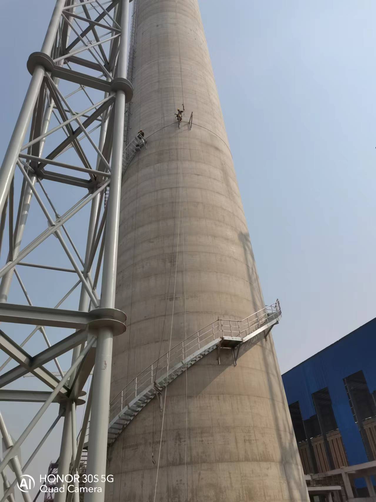 凌鋼110米煙囪4人涂刷航標(biāo),2人涂刷平臺(tái)油漆
